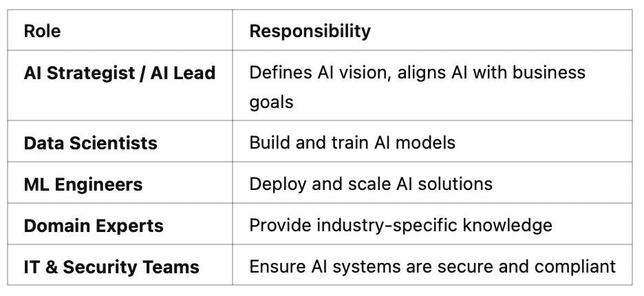 Roles in a Corporate AI Team: